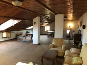 Il piano terreno invece ospita l' ingresso, un salone di circa 40 mq e le varie pertinenze.